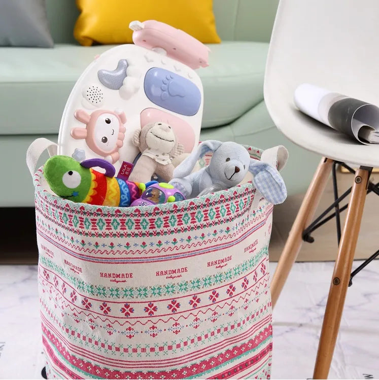 Product details of Versatile Design Meets Practicality: Introducing the Folding Cotton Fabric Waterproof Laundry Basket – Your Ultimate Solution for Tidying Up Dirty Clothes and Toy Storage with Style (NOTE: IT DOESN'T STAND WHEN EMPTY - DESIGN WILL BE DIFFERENT)